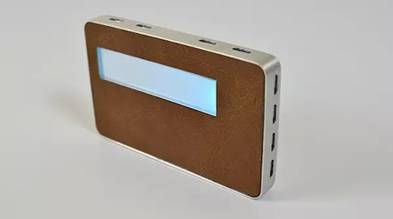 而这些所有的充电功能都是依附于一个核心的控制元件。这个元件大约有名片夹盒子大小,采用不锈钢金属框架和皮革而成,看起来很精致。