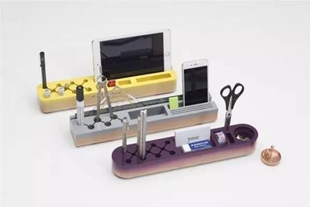 这是一款式极简化的桌面解决方案。将一整块材料进行合理的切割和处理,凹槽的形状和位置暗示用户对自己的工具进行合理的取舍和优雅的摆放。该系统有多款样式,针对不同人群的使用习惯提供最佳的建议。