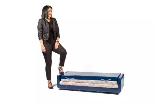 这个作品像是为了调皮设计,工作室以折叠变压器的形状为灵感,居然可以应用在沙发上,手提即可移动了。使用时,只需要将折叠起来的这个“大块头”按照步骤伸展,内部的坐垫、靠背整齐排列,两侧甚至还有拉伸的咖啡桌,简直完美。沙发的基本构架采用桦木胶合板制成,即使到处移动也不必担心重量。