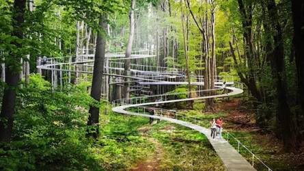 原先的结构只有两米四左右的层高,空间格局都是小单元,为了做到视觉流畅,设计师把空间打通、开放,把原先的中庭变成户外景观。为了解决层高的问题,设计师把大部分的天花都裸露,不做太多的造型,以减少压抑感。从三楼到一楼设置了一个大型滑梯,直通一层圆形地球LED,旋转梯绕着地球滑下来,带来视觉冲击力和童真趣味。