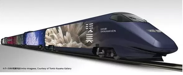 在日本,火车不仅仅是运输的工具,更是对本国文化的展现,因此铁道公司也会适时推出主题列车吸引大量游客。而最近,被誉为“世界最高速美术馆”的现美新干线“GENBISHINKANSEN”于今年的4月29日开始运营,最高时速达到210千米,被称为行走的美术馆。