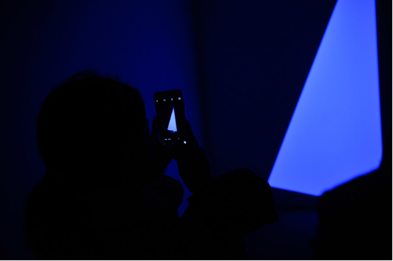 詹姆斯·特瑞尔所创作出一系列艺术投影作品,意在探寻外形与颜色之间的关系。展览上我们能够看到他的第一个光投影作品《Afum》:一个立方体投影悬浮在角落之上。这件作品集中展示了他对于艺术史中的至上主义的特殊兴趣,同时加入其对心理学和现象学的相关研究。他的此类相关作品被洛杉矶郡立美术馆和所罗门古根海姆博物馆永久收藏。