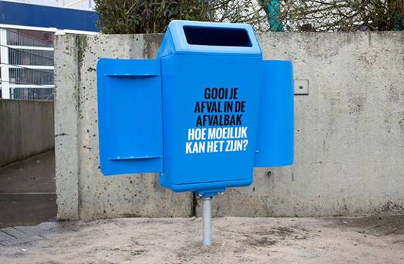 这个campaign的负责人Erik Kessels说:学生们好像丢垃圾遇到了困难,既然如此不如让他们更困难。通过这个活动,并没指望彻底改变大家的行为习惯,最主要目的是想让他们问自己一个问题:丢个垃圾有那么难吗?