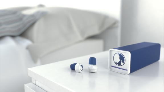 Hush隔音效果很出色,为了让佩戴者更容易入睡,还可以选择播放一些有助睡眠的音效,如海浪声、瀑布声、流水声等,你可以根据偏好来选择有助入睡的音效。这些音效并不是手机通过蓝牙传输到Hush的而是存储在耳塞内部的,与手机连接也是采用了低功耗蓝牙技术,开人员这样设计是为了提高它的续航时间。大多数人睡眠时间都在6-10小时不等,为了给佩戴者长时间播放音效又不会影响到闹铃功能,Hush至少要设计到10个小时的续航时间。还有,Hush是使用骨传导技术将声音传递给用户的,因此声音不会影响到睡在你身旁的人。