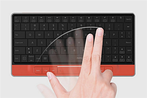 它最大的特点是:将普通键盘的文字输入功能和触控板的拖拽、点击等功能结合在了一起。也就是说,这款 Moky 键盘不仅可以进行文字输入,也可以当作鼠标来使用。