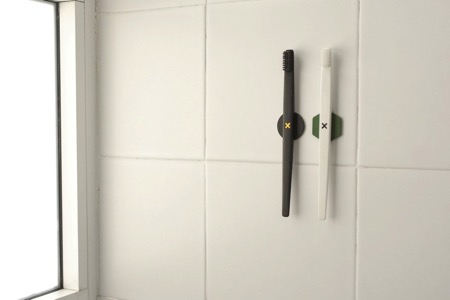 在洗漱间,牙刷虽然不大,但也要占用一些宝贵的空间。Shennbrush是一套壁挂式牙刷,可以把牙刷盒牙膏一并“贴”到墙壁上,用不着多大地方而且有利于通风保持卫生。